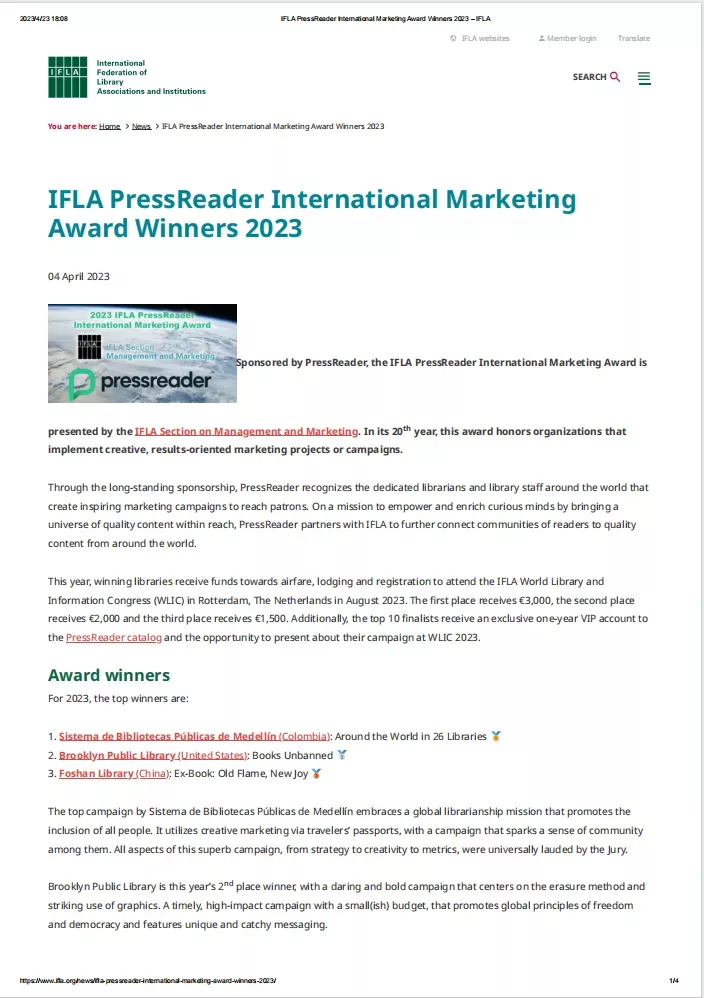 3. 社会影响力:依托标准建设的智慧服务项目,盐田区先后获得第四批“国家公共文化服务体系示范项目”、2023年国际图联(IFLA)国际营销奖在内的多项国家级、国际级大奖。